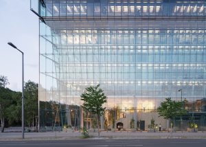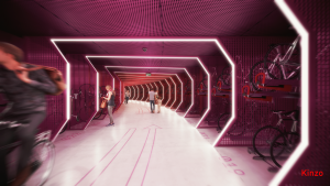 In addition to the design of various lobby areas, the construction measures commissioned also include the conversion of the Passerelle into a bicycle parking area: The new bike parking connects the Potsdamer Platz subway and S-Bahn station with the Forum in the Sony Center. The passageway offers space for over 200 bicycles (including e-bikes and cargo bikes) and is to be used daily by commuters, employees, residents and visitors. Completion is planned for 2023.