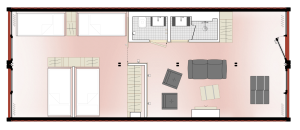 The idea to build a hostel out of vacant overseas containers, which look back on a fulfilled life at sea, is unprecedented. Well-placed cabinetwork divides the unusual layout of the containers (12 x 2.5 m) into useful sections, even integrating a separate bathroom space. Cosy upholstery made of natural materials in muted colours round off the atmosphere.
