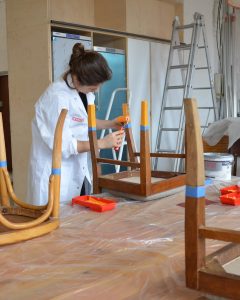 Among other things, old furniture in the reception area was restored and the seating area was reupholstered.