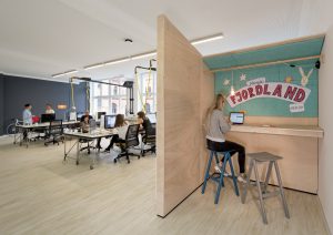 Kinzo was commissioned to design the floor of an industrial building in Prenzlauer Berg and designed an office that gives Fjord employees the greatest possible design freedom and creates a high degree of spatial flexibility.