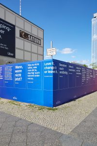 The fence has a length of 111 meters and shows a total of 111 quotes. It is to be on display on site until at least 2023. Hines is planning to build a high-rise on the vacant site in the center of the Alexanderplatz area.