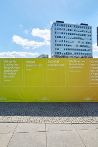 Kinzo has now curated the many answers together with Matze Hielscher and translates the personal reflections into reality for the first time – in accumulated form and visible to all passing Berliners. The project, in bright rainbow colors, is intended to reflect both the diversity of the surrounding area and the many different voices behind the project.