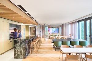 New ventilation system, heated and cooled ceiling sails, and a room climate that invites you to stay. All under the motto: less boredom, more law firm charisma.
