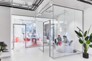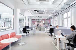The rental space is part of a listed commercial courtyard complex, which was built in 1895 in the neo-Renaissance style.