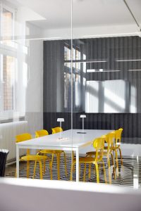 The seating furniture by Berlin design studio Objekte Unserer Tage (OUT) provides a stylish splash of color.