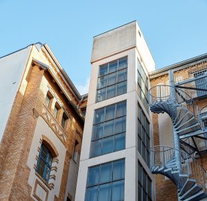 The rental space is part of a listed commercial courtyard complex, which was built in 1895 in the neo-Renaissance style.