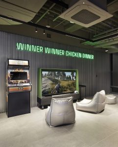 The 8,675 sqm PUBG HQ, completed in 2022, is not just an office – it’s a blend of PUBG’s vibe and cutting-edge design. From flexible workspaces to a rooftop retreat with epic Gangnam views, it’s where work meets play. This new HQ is a testament to Krafton’s commitment to creating a working environment that is both functional and fun. The PUBG HQ is a place where employees can work hard and play hard, all while being surrounded by the unique and exciting world of PUBG.