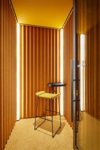 The upper floor (communal area), whose layout was planned together with local architecture firm Daewon, was deliberately intended to be bright, as it also has access to the roof terrace, so that employees can enjoy a very conscious break in the office in a very pleasant atmosphere. Especially on the roof terrace. You literally have to step from the dark underground to the surface.