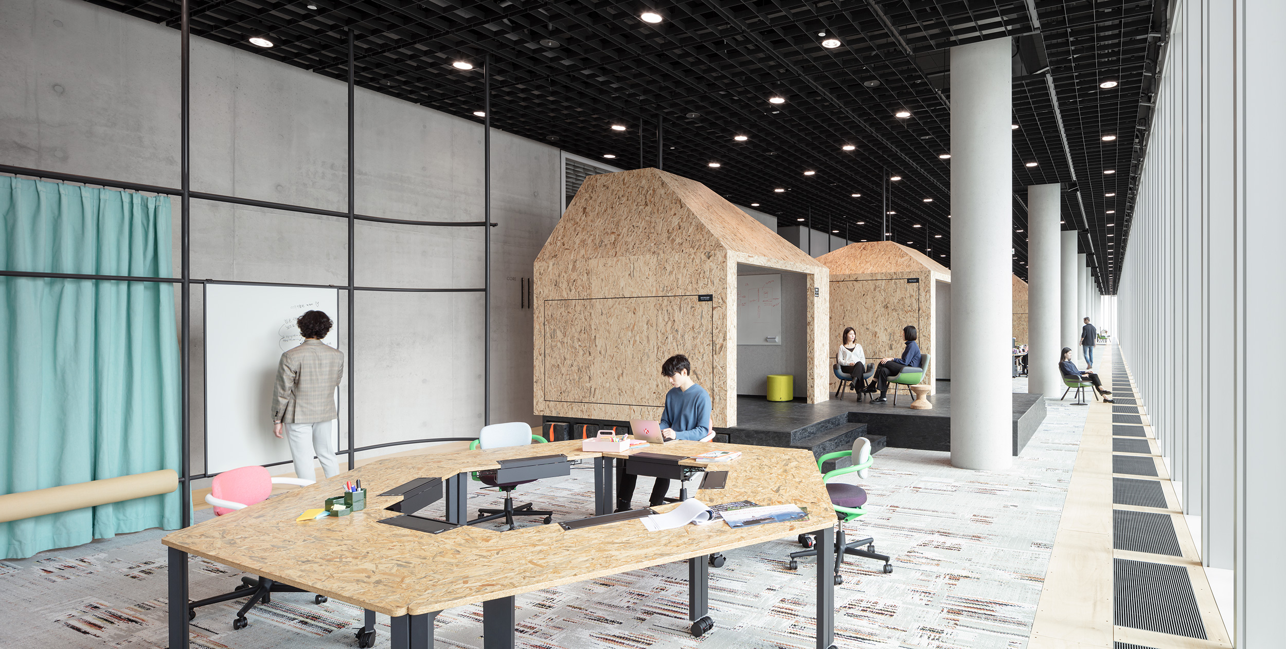 2019 eröffnete „F21“ im 21. Stockwerk für die Angestellten von AmorePacific sowie für interne Start-Up-Unternehmen. Im Gegensatz zum kühl-minimalistischen Design der anderen Stockwerke, setzt Kinzo bei der Gestaltung der Fläche auf eine Mischung aus rohen Materialien und kräftigen Farben.