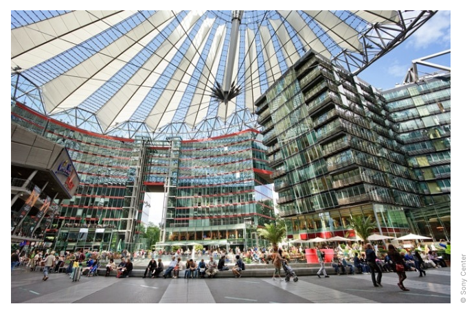 Auch im nächsten Teilprojekt werden die Grenzen zwischen dem städtischen Raum und dem Innenraum weiter aufgelöst: Beide Räume an der Bellevuestraße ermöglichen die Aussicht auf das Forum, dem Herzstück des Sony Centers.