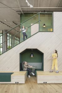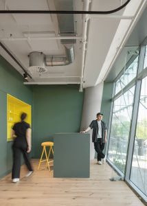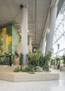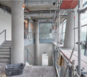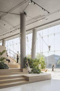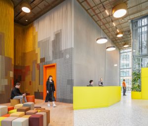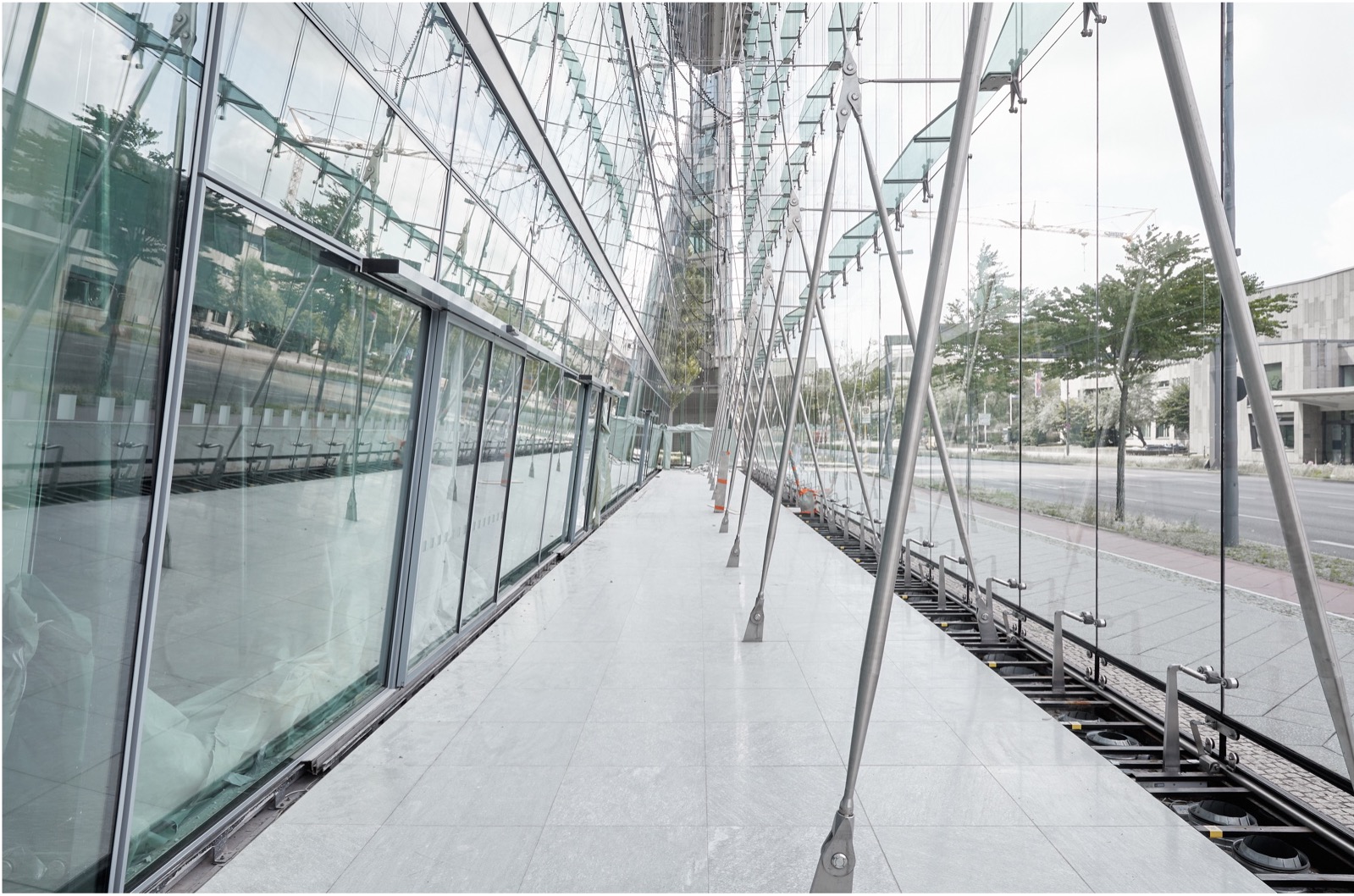 Die beauftragten baulichen Maßnahmen umfassen neben der Gestaltung verschiedener Lobbybereiche auch den Umbau der Passerelle zum Fahrradparkplatz: Das neue Bike Parking verbindet den U- und S-Bahnhof Potsdamer Platz mit dem Forum im Sony Center. Der Durchgang bietet Platz für über 200 Fahrräder (inkl. E-Bikes und Lastenräder) und soll täglich von Pendler:innen, Mitarbeitenden, Anwohner:innen und Besucher:innen genutzt werden.