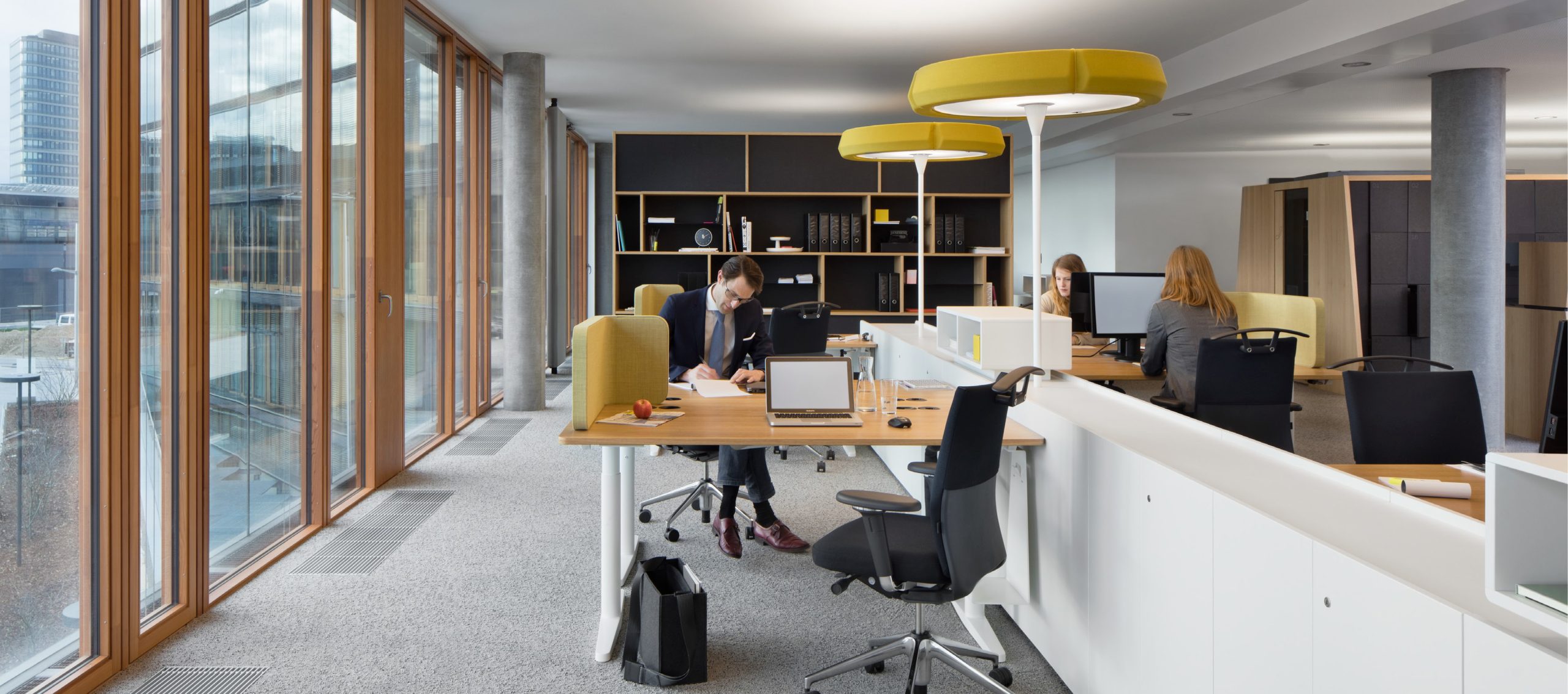 Mit Details wie eigens für den Campus entworfenen Leuchten, Raumteiler oder Akustik-Regalen beweist Kinzo auch in der Größe ein Gespür für Form und Funktion.