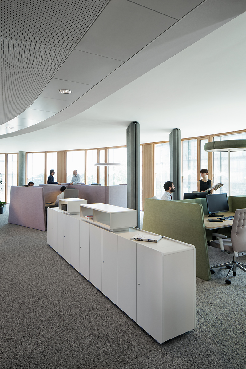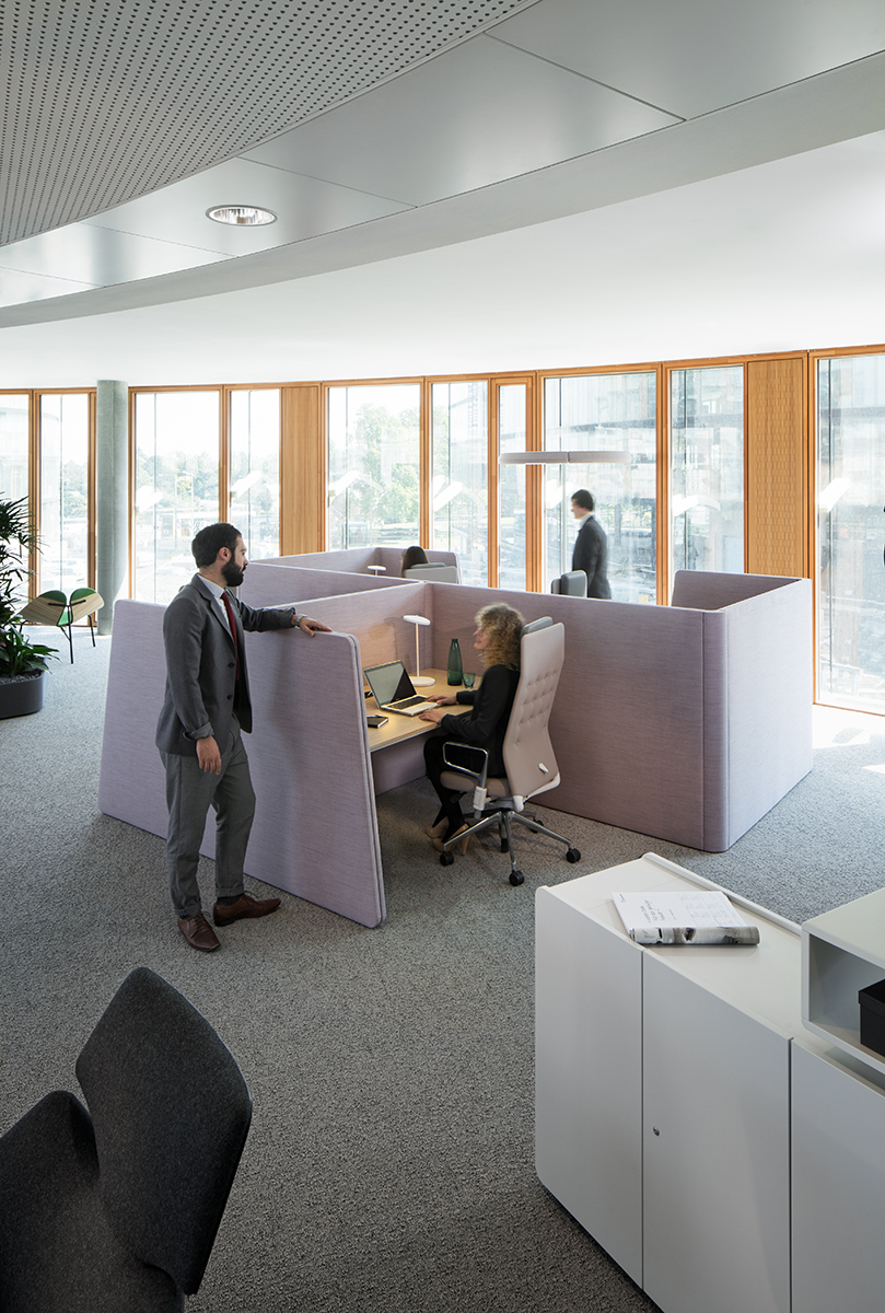 Mit Details wie eigens für den Campus entworfenen Leuchten, Raumteiler oder Akustik-Regalen beweist Kinzo auch in der Größe ein Gespür für Form und Funktion.