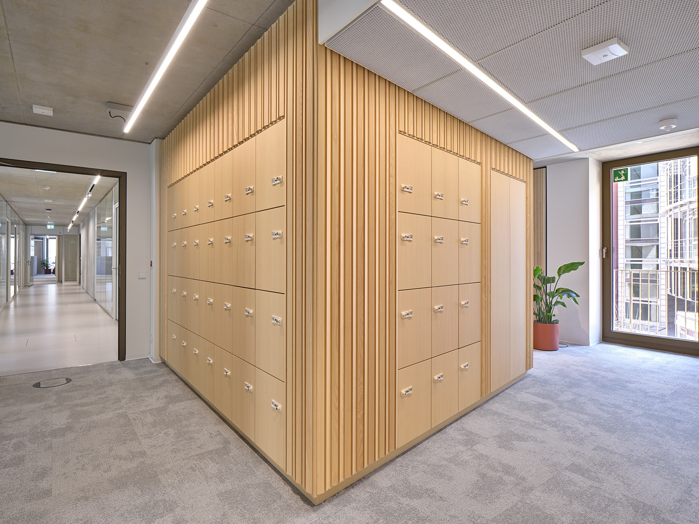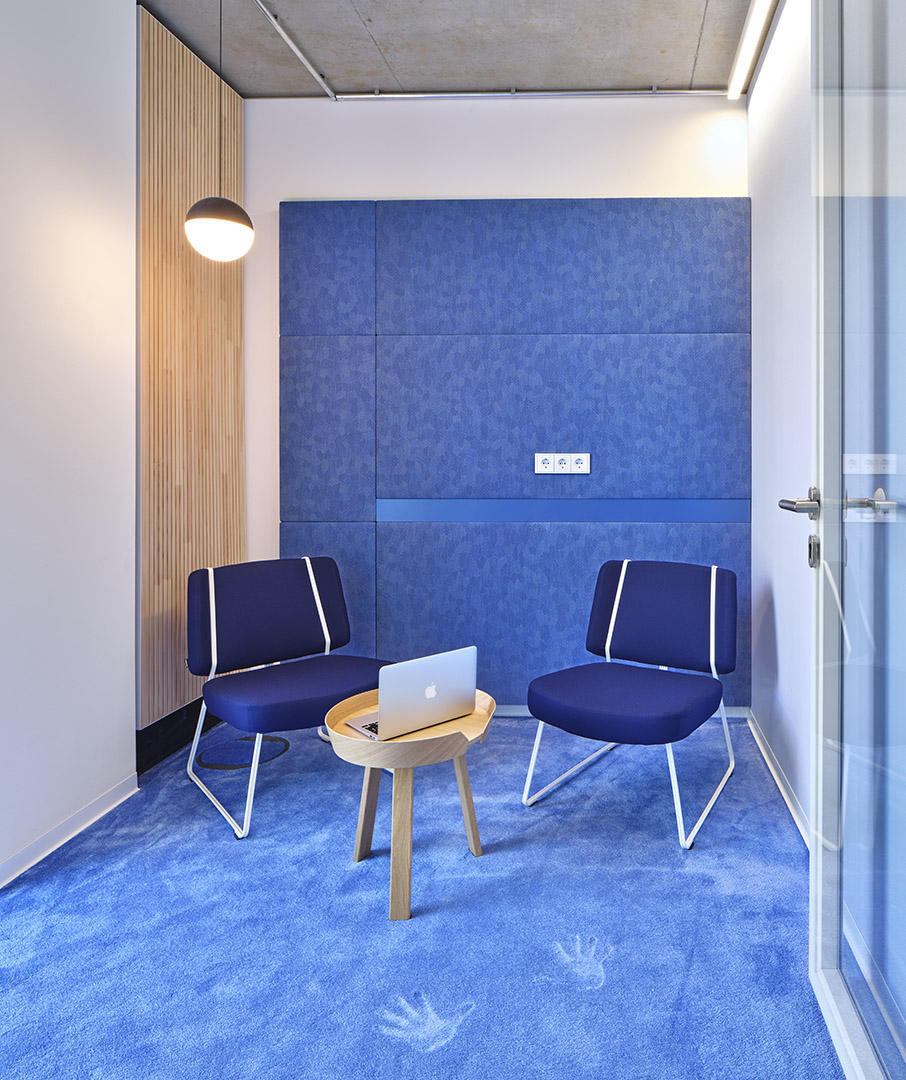 Im We-Space steht mit dem hölzernen Tisch ein wahrer Koloss. Er zitiert die klassische Schreiner-Werkbank, konnte aber aufgrund seiner aufgeblasenen Proportionen und der herausfordernden Balkenstärke nur vom Treppenbauer realisiert werden.