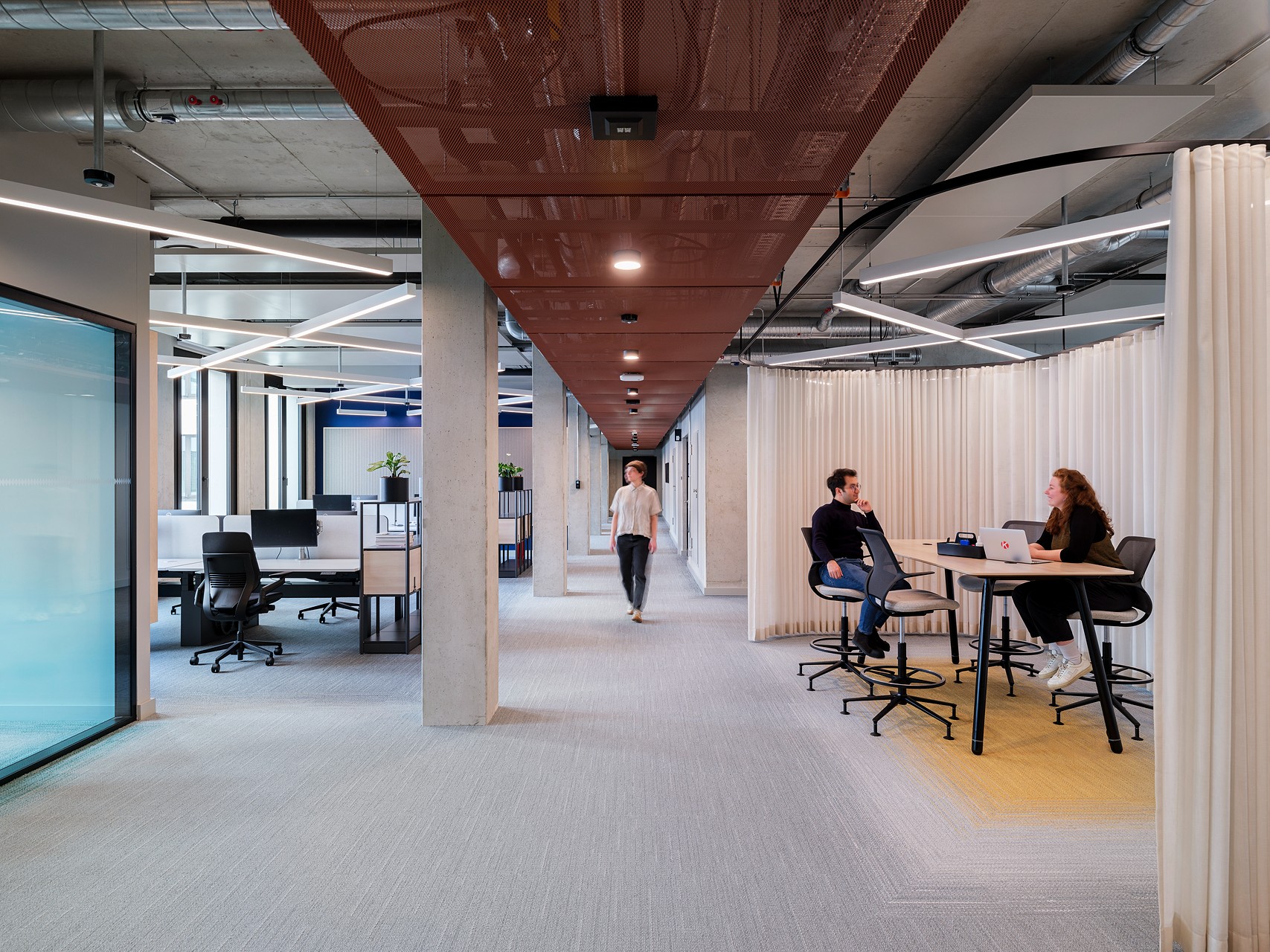 Der internationale vertrauliche Tech-Client entwickelt Softwarelösungen zur Optimierung digitaler Arbeitsprozesse und beschäftigt weltweit rund 40.000 Menschen. Für die knapp 400 Mitarbeitenden in München mietete das Unternehmen Flächen in einem neuen Bürogebäude im Osten der Stadt, im Quartier „Die Macherei“