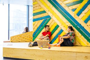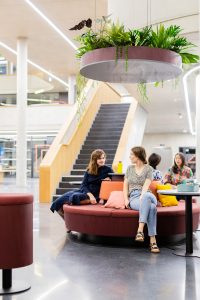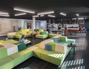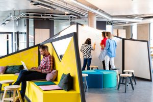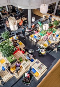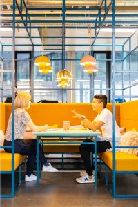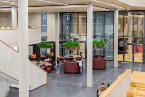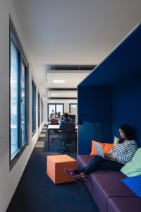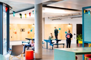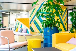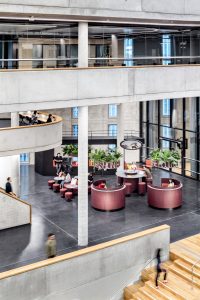 Auch für einen weiteren Zalando Standort hat Kinzo ein identitätsstiftendes Raumkonzept entwickelt: im Neubauprojekt M_Eins an der East Side Gallery.